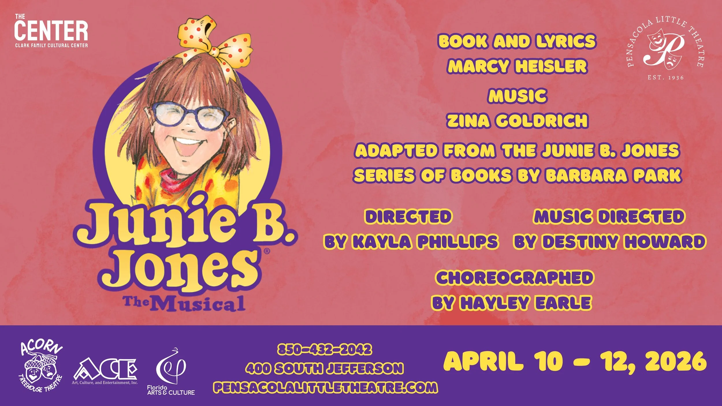 For this production, we are producing a special sensory-friendly and accessible performance that welcomes all audiences to enjoy the fun in a supportive, inclusive environment—because theatre is for everyone, just like Junie B. would want it. The performance will be at 10:30 AM on April 11th. To book tickets, please contact the Box Office at 850-432-2042 or by emailing Boxoffice@pensacolalittletheatre.com.