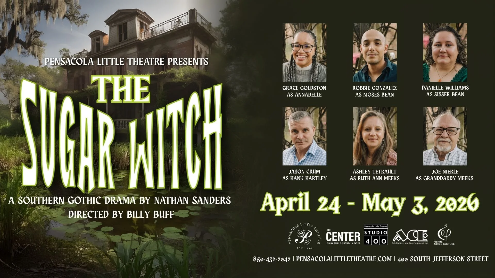 The Sugar Witch asks us to confront what we inherit—family, history, and prejudice—and whether we dare to change it. Much like the works of Flannery O’Connor, this play doesn’t offer easy answers. We hope that this production immerses you fully in the world of Sugar Bean—that you feel its humidity, hear its echoes, and think long after the final moment.